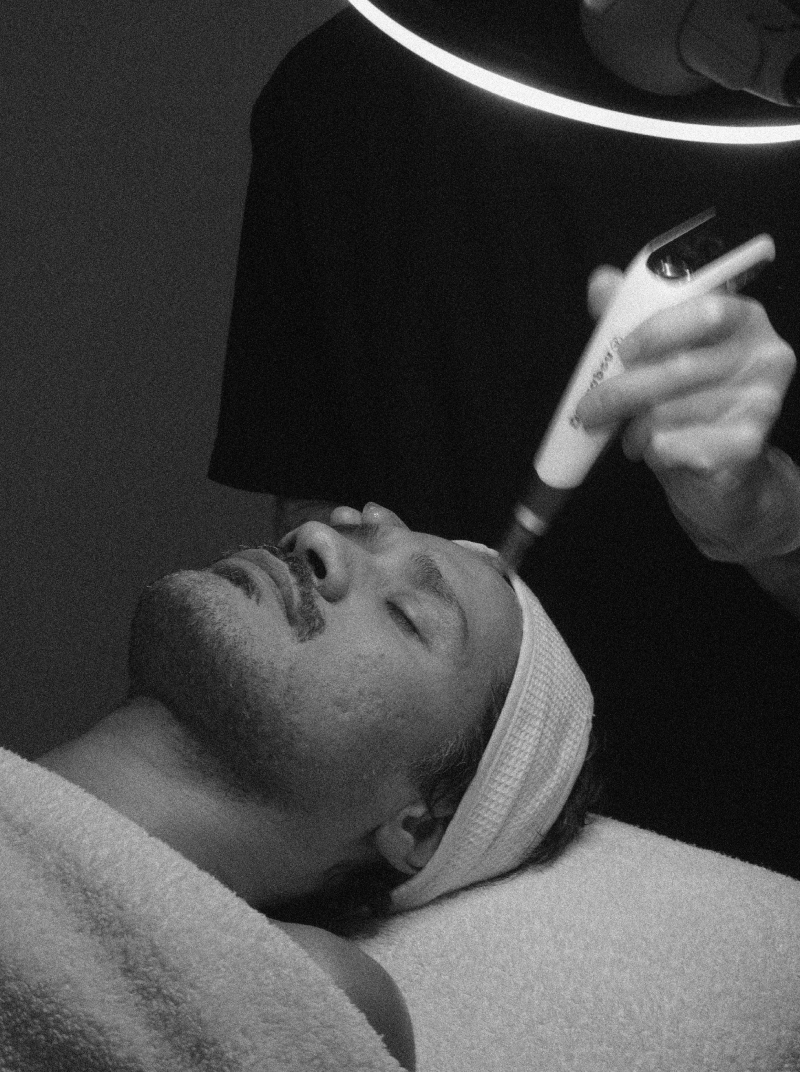 Every treatment at Salon d’Homme is personalised to your needs. With lymphatic drainage, a neck and shoulder massage, and tailored recommendations for follow-up treatments and home use. First-timers receive a thorough intake with AI-skin analysis.